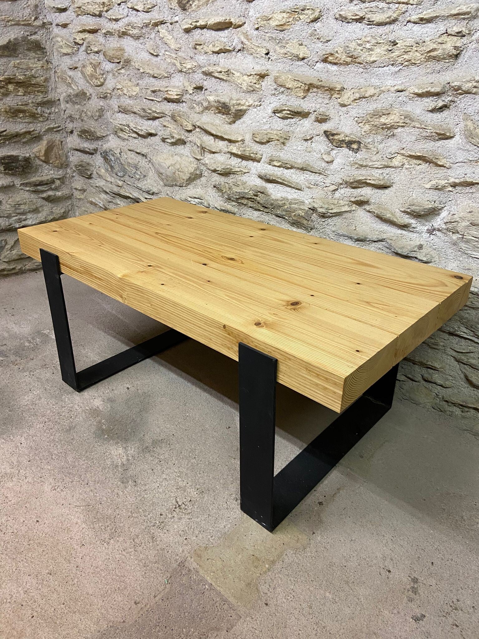 Table basse bois massif - Fer plat